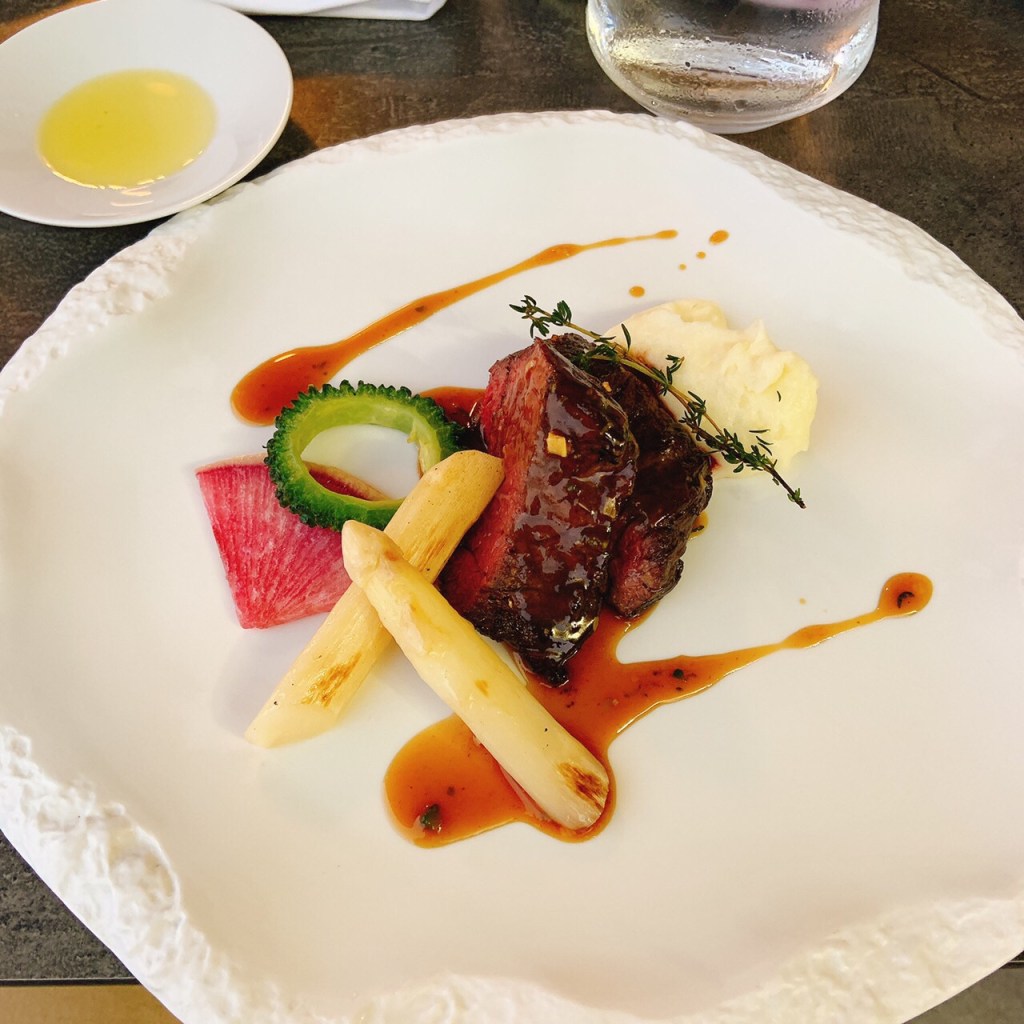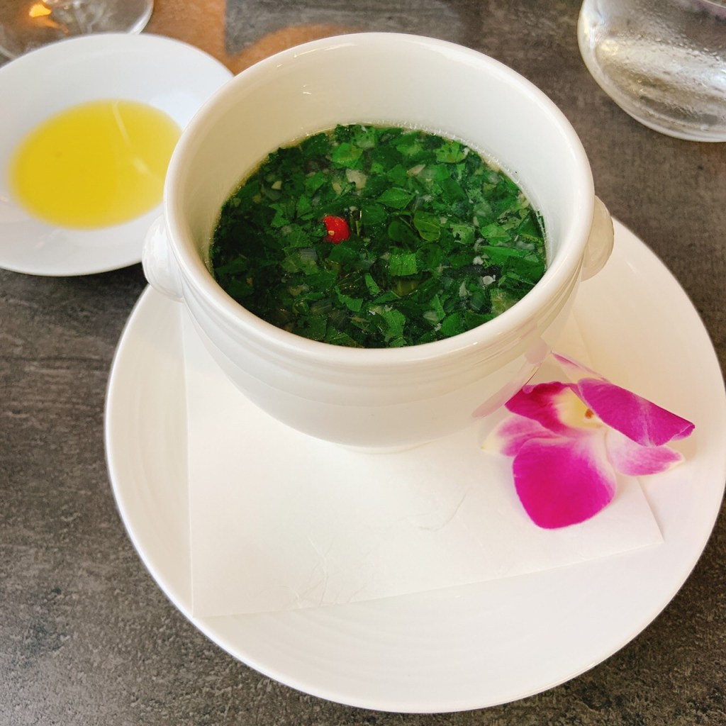 スープ、パン、メイン、デザートのマンゴープリンでお腹いっぱいになりました🍮