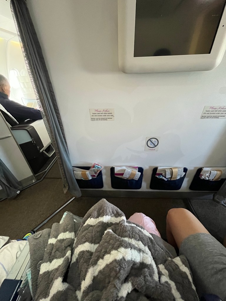 目の前がビジネスクラスなので、フラット席いいな〜と思いながら見ていました(笑)