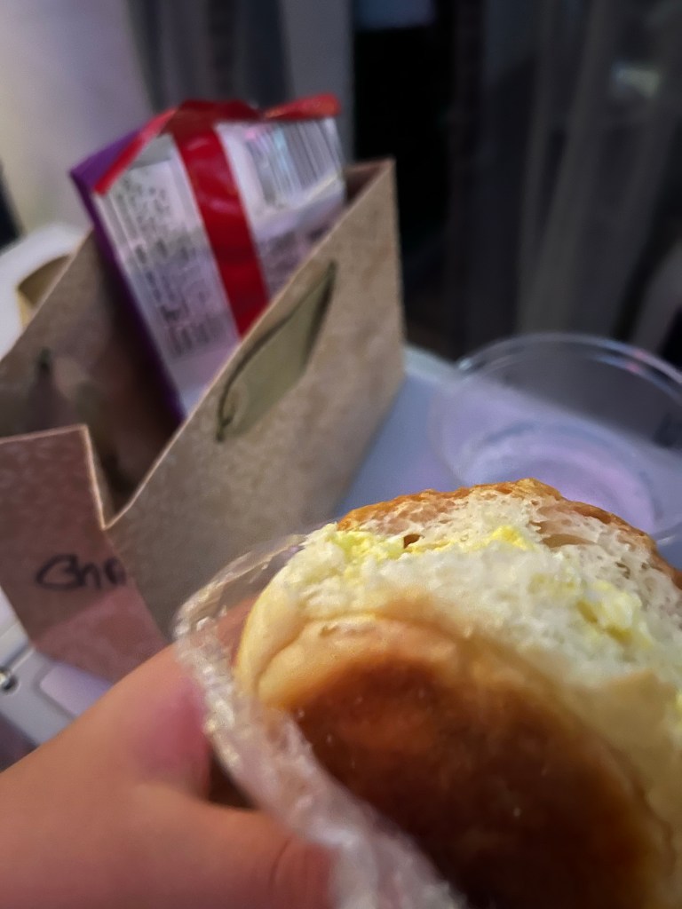 ②着陸の1時間半前に軽食(朝ごはん?)