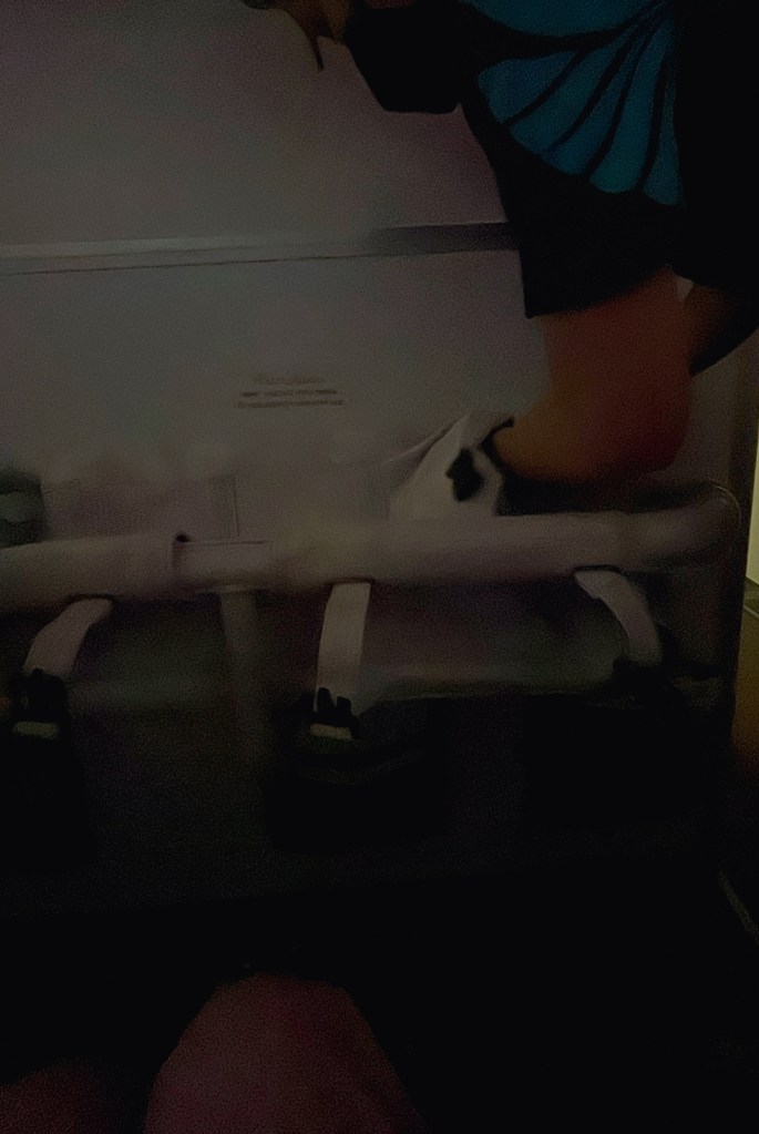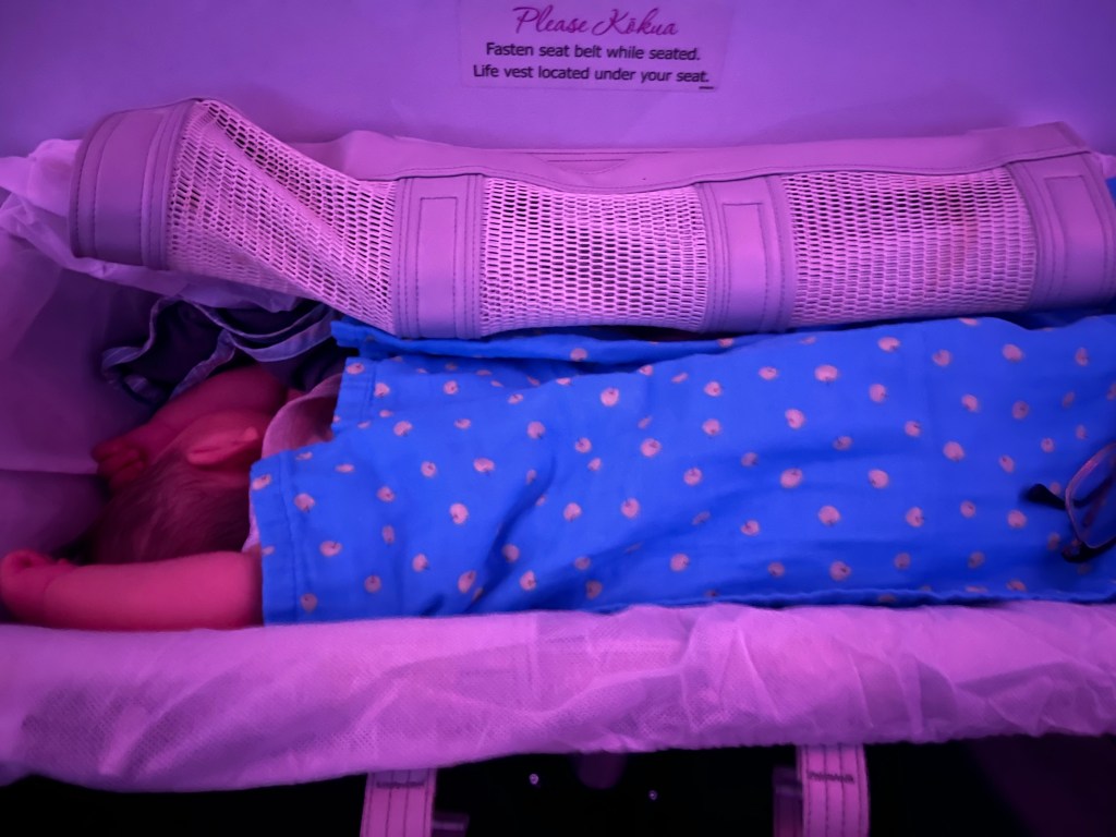 飛んでから2時間後ベビーが腕の中で眠ってしまい重くなってきたので、CAさんに