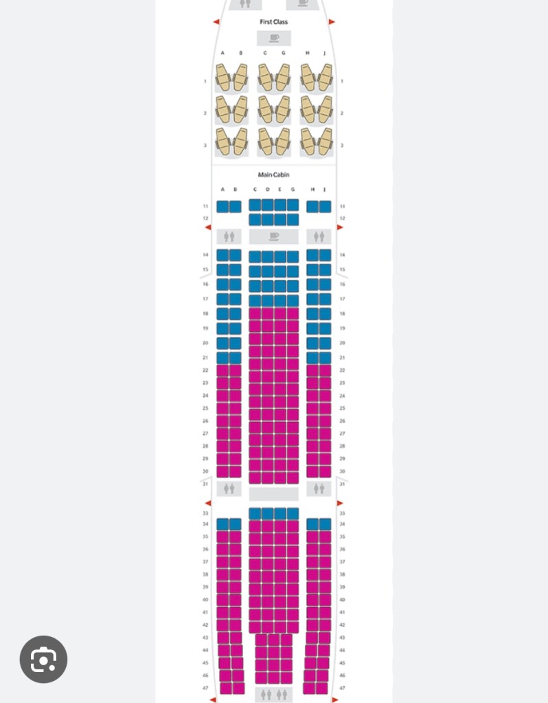14列は青い席。つまりエコノミーより少し高いエクストラコンフォート席です。